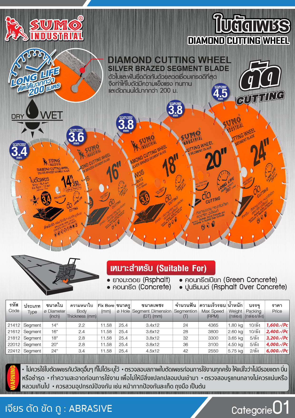 - ใบตัดเพชร / ใบตัดคอนกรีต / ใบตัดถนน SUMO